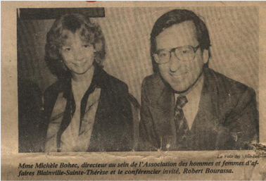 Michèle Bohec est gouverneure de la Chambre de Commerce de Groulx pendant les années qui ont précédées son décès. Elle est l’organisatrice de centaines de dîners d’affaires où plusieurs personnalités sont invitées à prendre la parole.